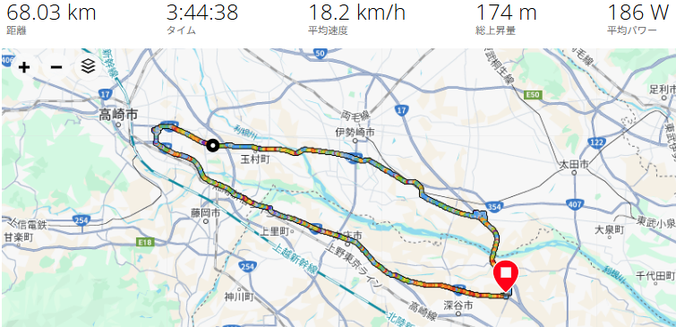 無事に高崎に到着。Vo2MAX(心肺機能)の向上を目指してハイペースでガンガン踏んできました!