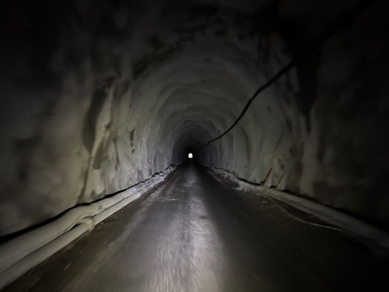 横には何が通っているのかパイプが伸びており、トンネル中央にはすれ違いのために広い空間があります。
