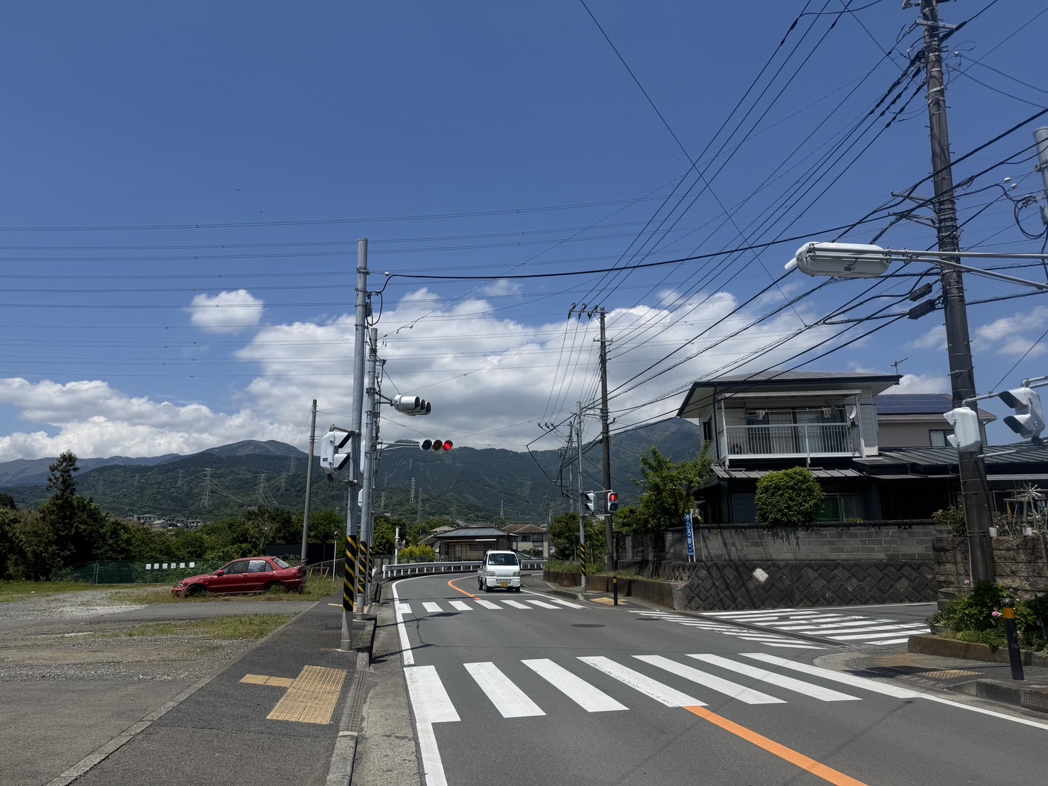 ちょっとした山の中腹にある駐車場に車を止めると、これから上る峠が一望できます。
