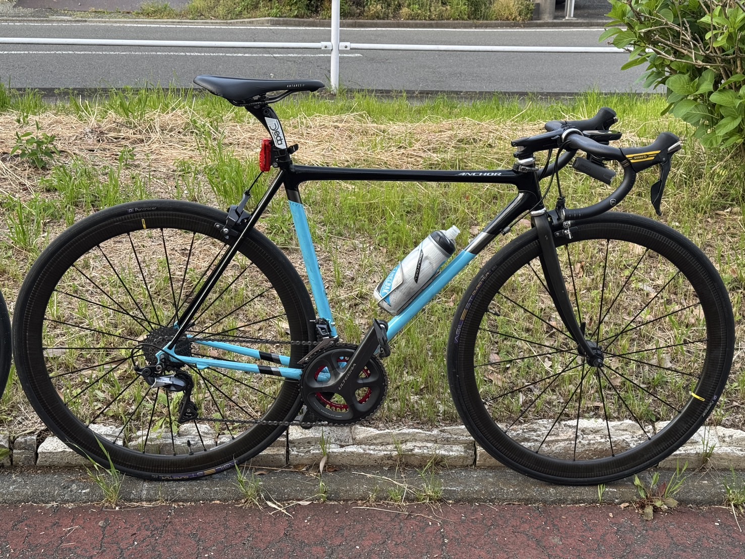 細身の美しいフレームはアンカーのクロモリフレーム、ネオコット。