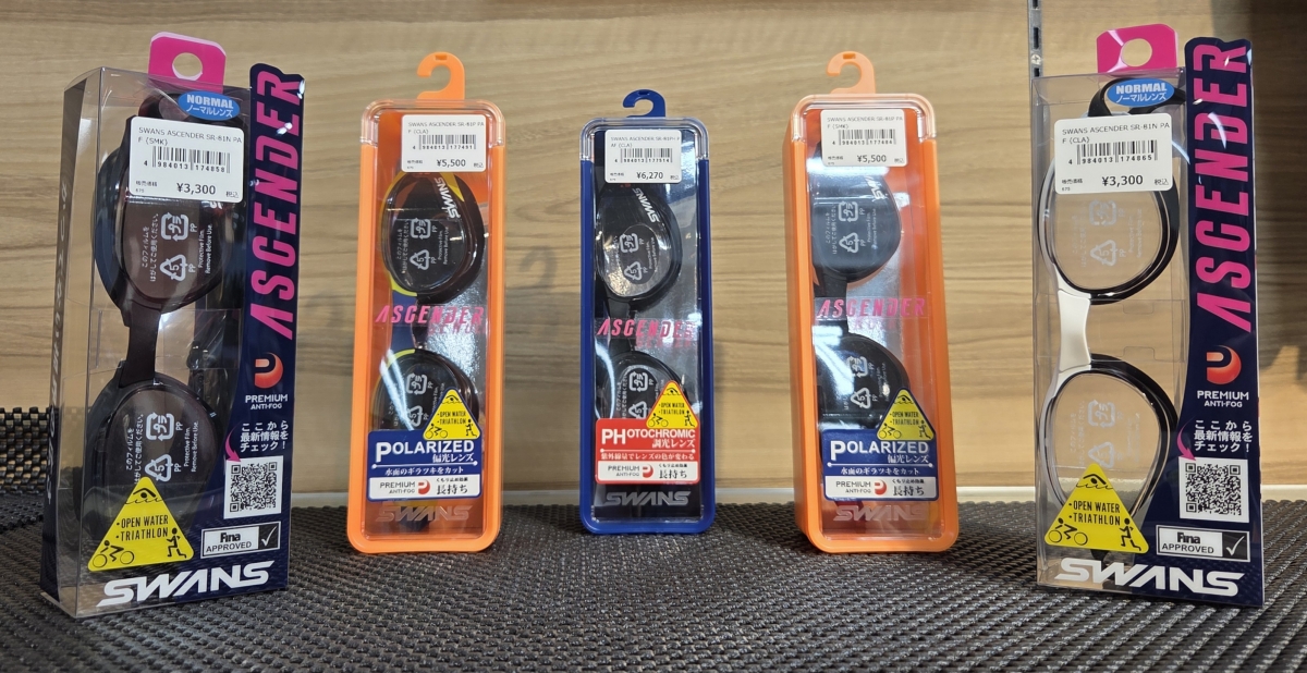 スイムゴーグルは「アクアスフィア」製品も在庫中。
