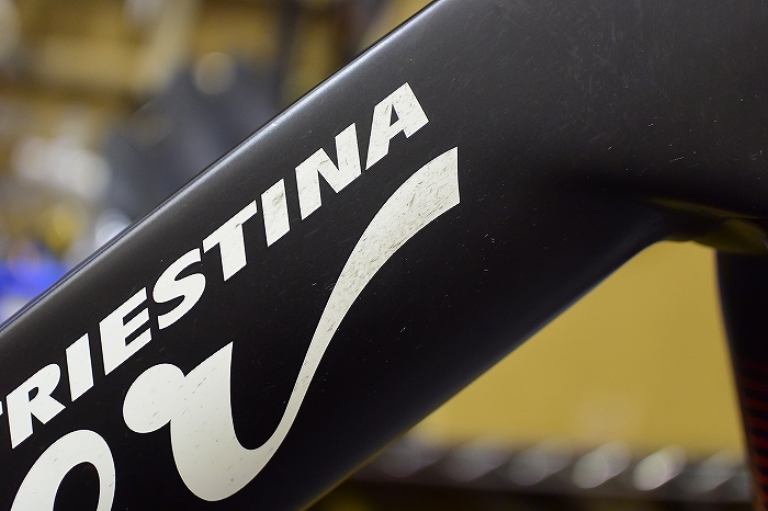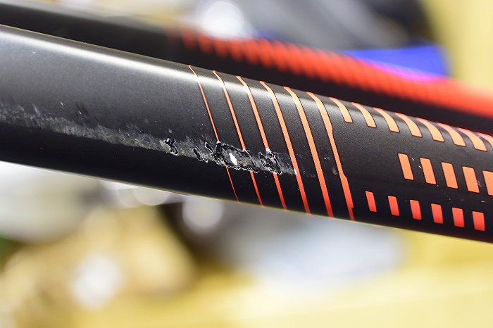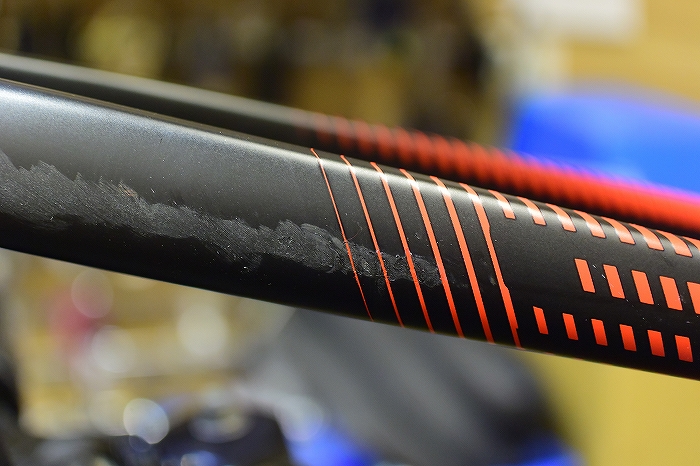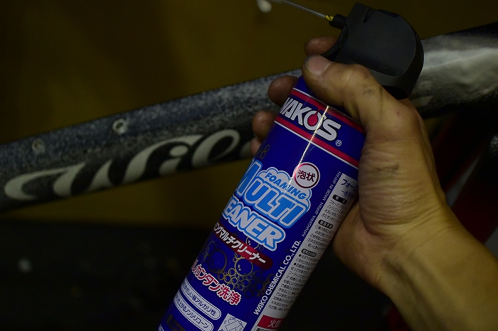 フレームもスッキリさらさら、キレイになりましたが、よく見ると白いロゴ部分に黒ずみが残ってしまい、クリーナーでは落ちません。