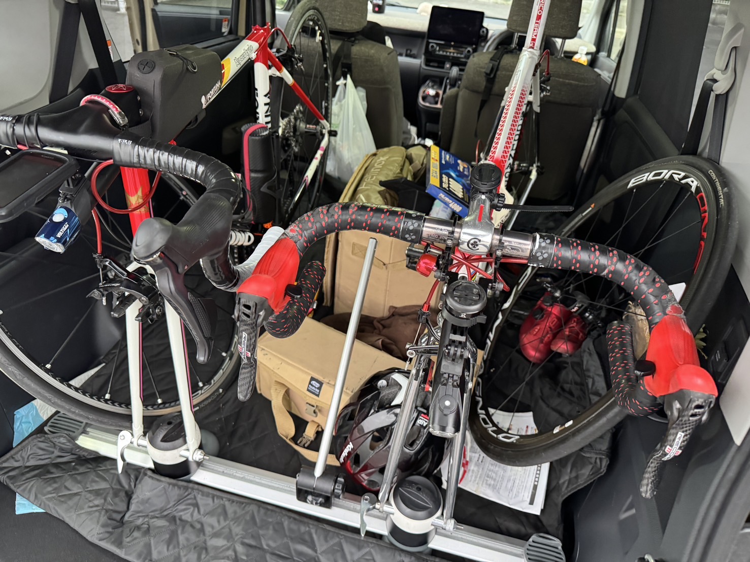 車載マウントのVERGO、数十秒でバイクを車載できるので本当に便利です。