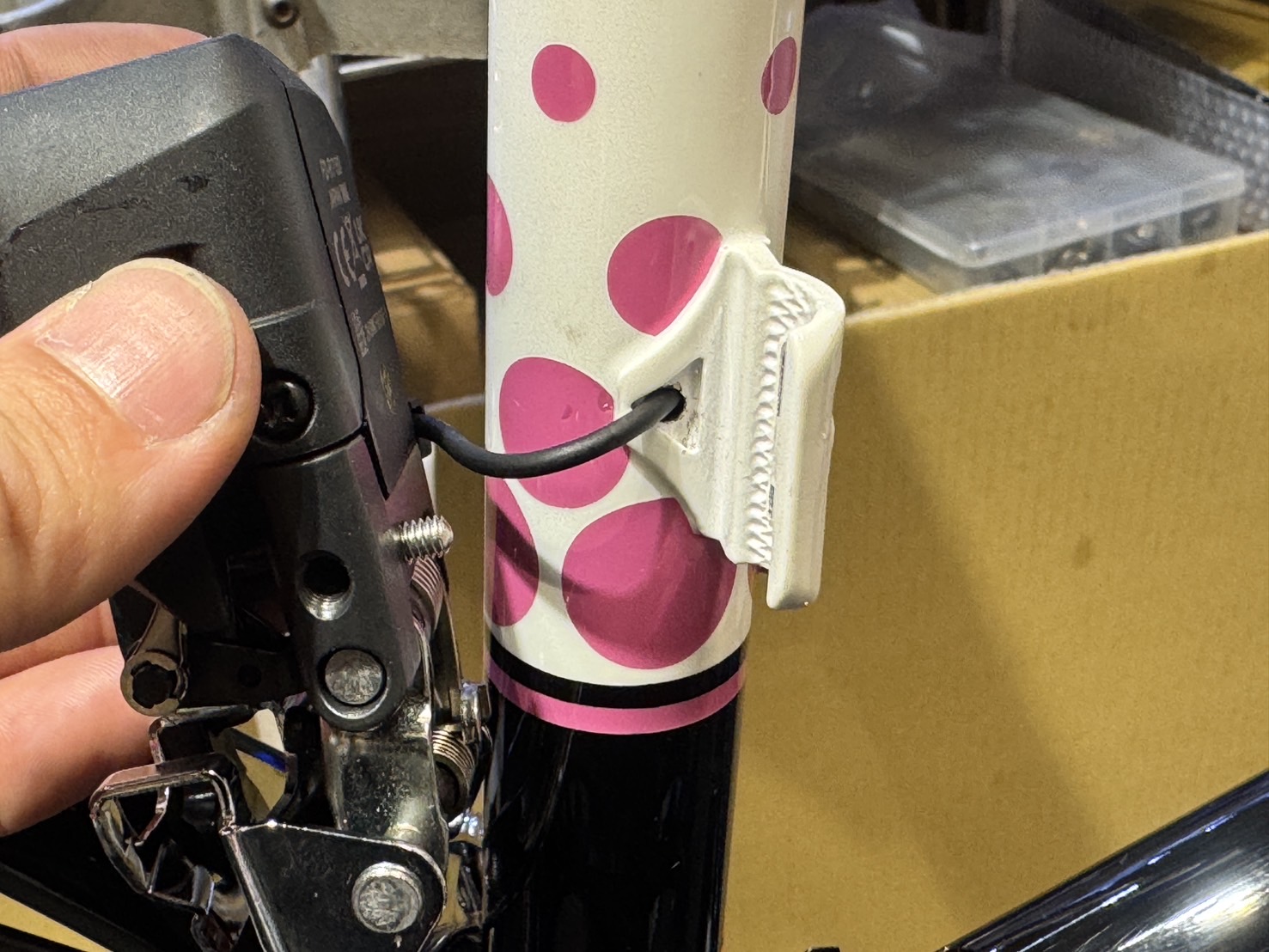 細い穴からE-TUBEを通してコンポパーツを取り付けていきます。