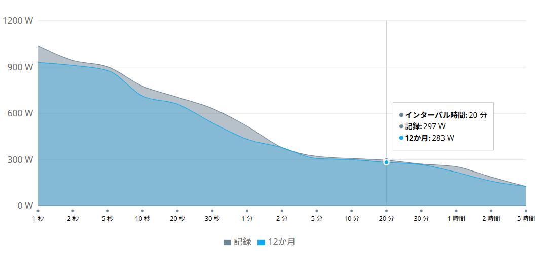 GARMINなど、サイコンの記録アプリでは、自分の10分の最大パワー、1時間の最大パワー、2時間の最大パワー、、、などを教えてくれます。