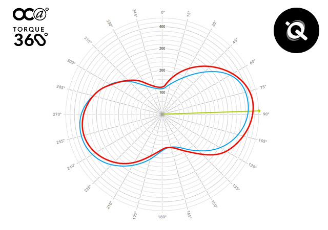 ROTORのパワーメーターもスマホアプリと連動することでペダリング中どの角度の時にどれくらいのパワーを発揮しているかを確認することができます。