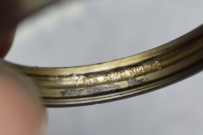ベアリングが収まる中央の溝が削れてボロボロになっています!