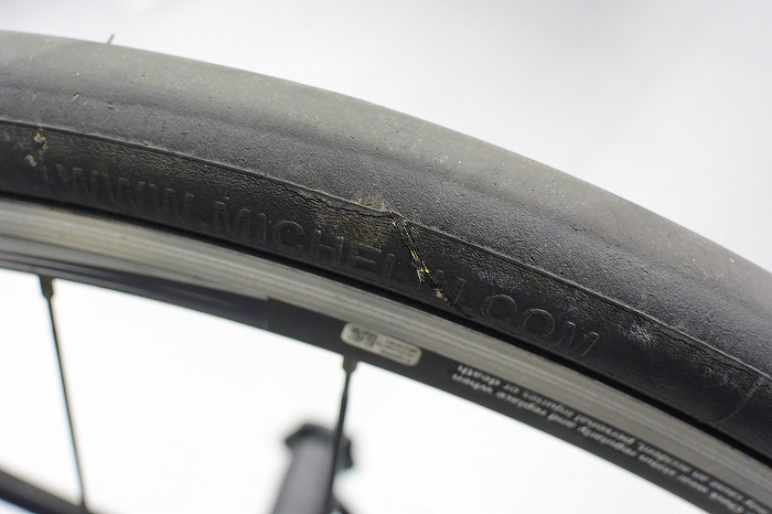 タイヤは劣化してヒビが入っているので交換しましょう。