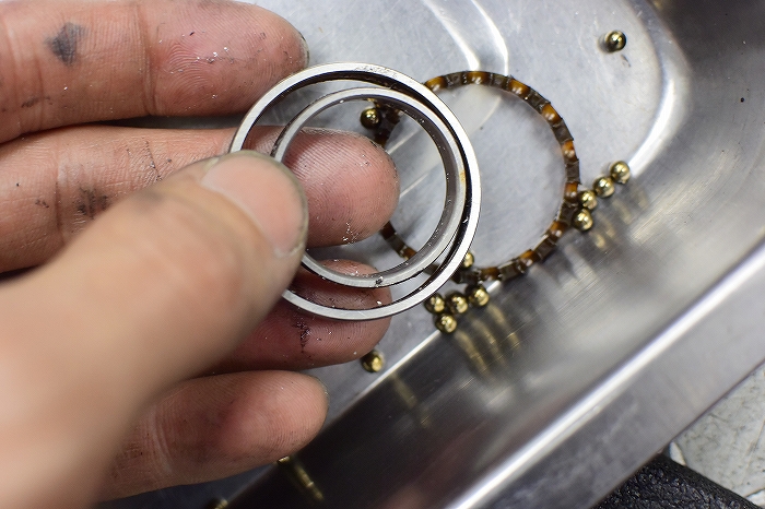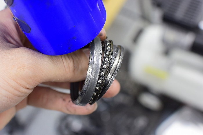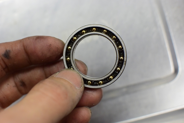 この小さなゴミがベアリング内部に入るとベアリングが少しづつ傷んでしまうので掃除が必要です。