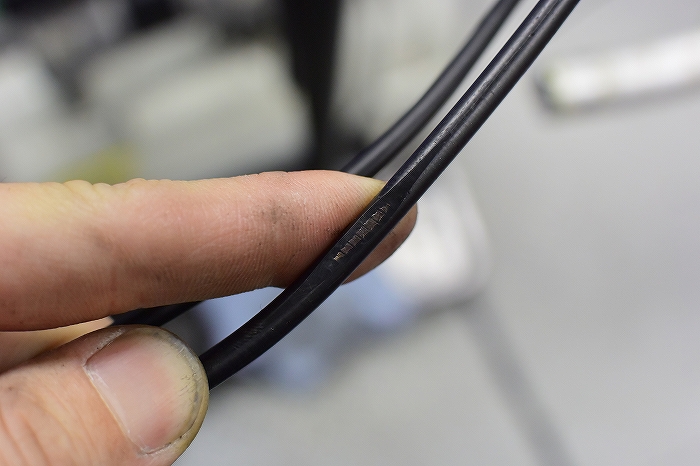 アウターワイヤーもこすれて中身が見えてしまっています。