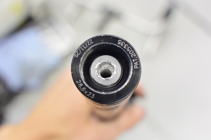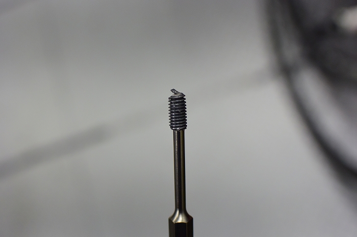 仕方がないのでボルトに細いドリルで小さな穴をあけて逆タップ!