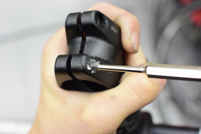 ステムのネジ(下)もネジの頭が飛んでネジ部分が取り残されている!!