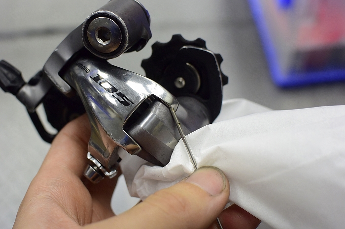 ギアチェンジが悪い状態でしたが、ワイヤが切れかかっていました。