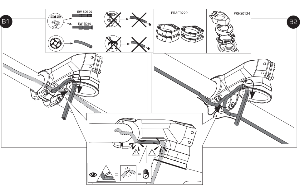 画像左はもっともシンプルなハンドルからステム、ヘッドと内装し、ワイヤが一切露出しないタイプ。