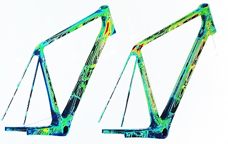 BBまわりの形状を見直し剛性を13%増加、逆にヘッド周りの剛性を見直し8%減少。