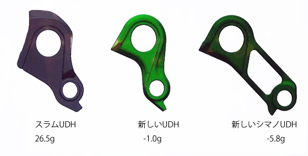 近年、SRAM社の提唱する共通ハンガーUDHですが、独自形状にすることで変速の確実性とさらなる軽量化を目指しています。