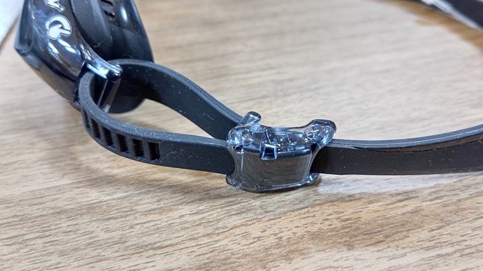 オープンウォーターでは特に欲しい機能のひとつである装着中のベルト調整機構は両サイドのアタッチメントで可能に。