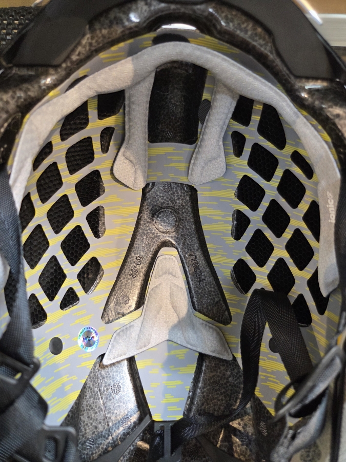 ヘルメット内部にハニカム形状の「コロイド」を採用しています。