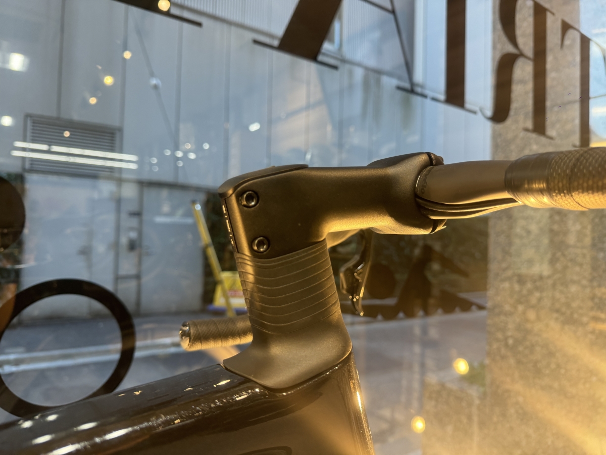 ケーブル類はハンドル裏側を沿ってそのままステム中へと入っていく構造です。バーテープを巻けば露出はありませんので非常にスッキリとした見た目に仕上がります!