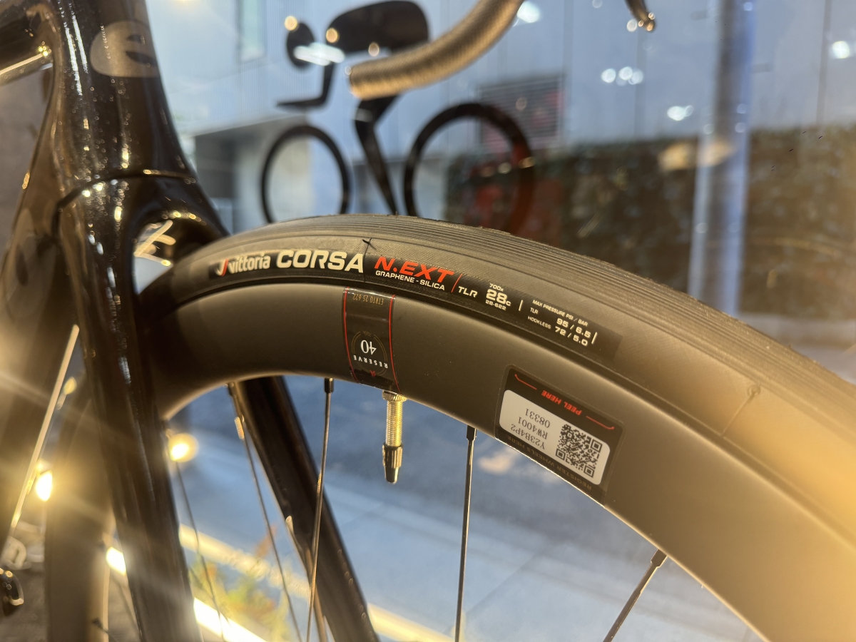 タイヤはVITTORIAのCORSA NEXT 28Cとなっています。このまま乗るもよし、更なる快適性をもとめて太くしたりチューブレス化するもよしです。
