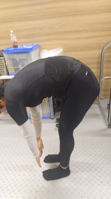 専用の計測器を使って、股下・胴長・腕・肩幅・足の長さを測定します。
