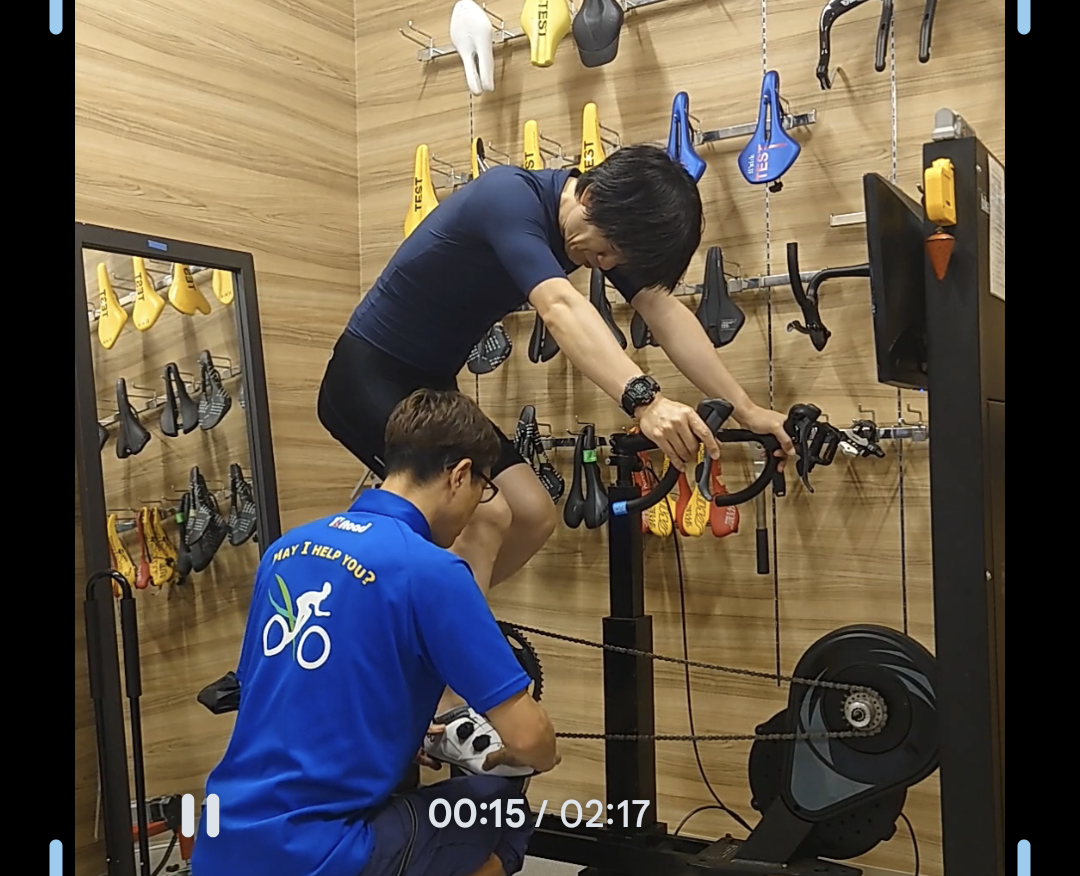 トライアスロンバイクやタイムトライアルバイクではポジションの自由度が高く、半面身体に合わせてポジション、セッティングを出さないと本来のパフォーマンスを発揮できないどころか身体を痛めてしまったりします。