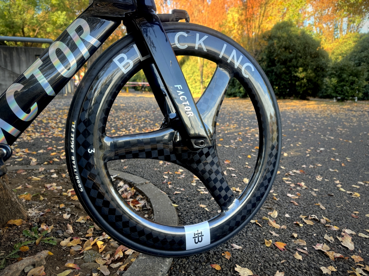 フロントホイールはBLACK INCの3スポークバトンホイールを装着しています。