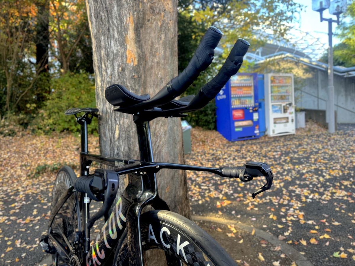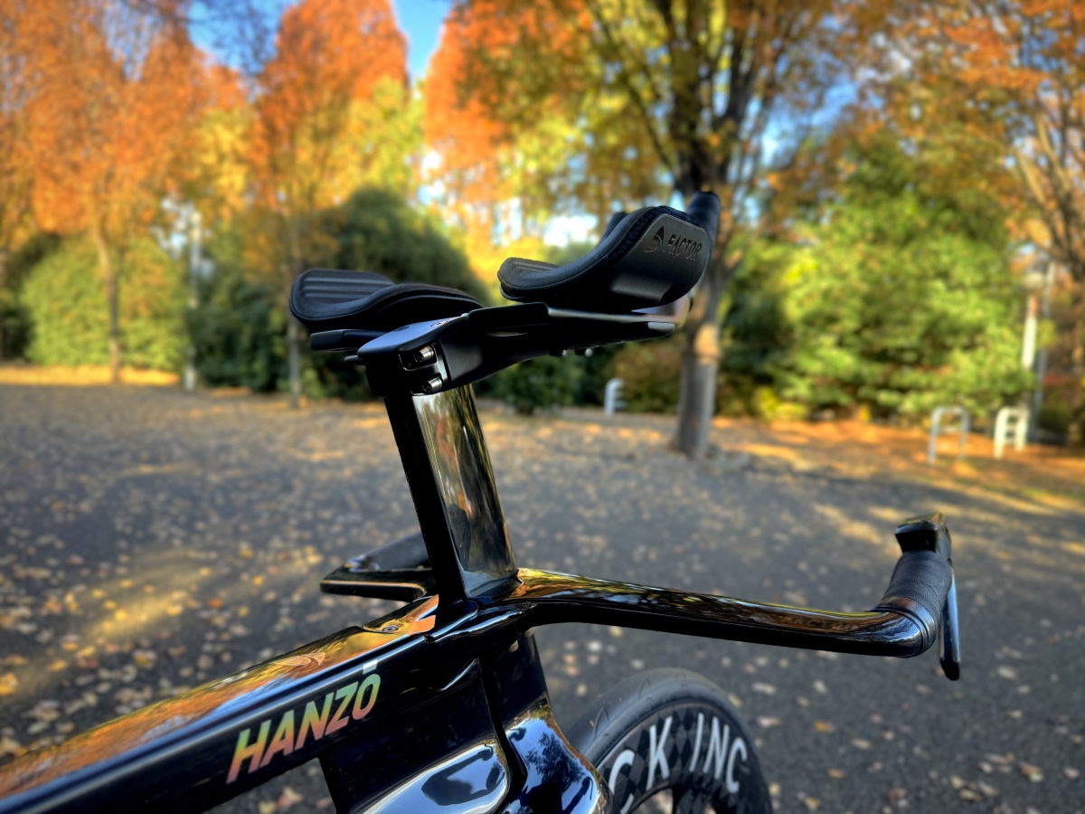 姿かたちが似ているトライアスロンバイクにはたくさん乗ってきましたが、ピュアなTTバイクとなるとこんなに違うのかというくらい漕ぎ出しの軽さ、反応の良さはピカイチでした。他のスタッフがHANZOに乗っているところも見ましたが、ホイールも相まって音を立てて空気を切り裂きながら突き進んでくるのが周りから見てもわかるくらいで圧倒されるオーラがありました。