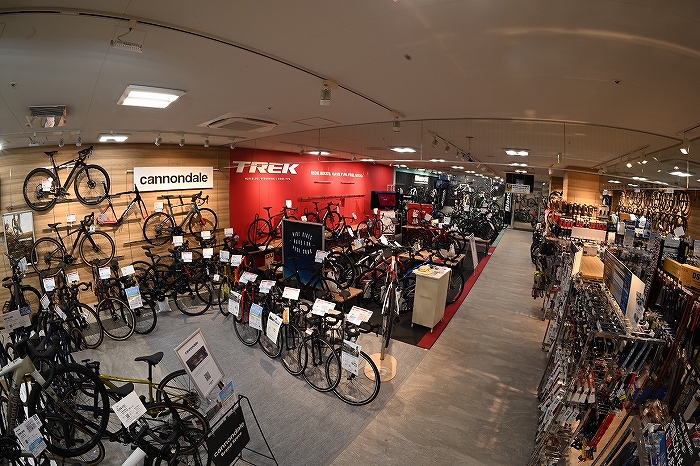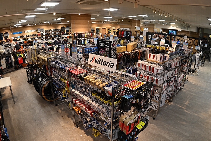 地下フロアではロードバイクをはじめとし様々な車種や用品をご用意しています!1式全て揃えらえるのも当店の特徴です!是非ご来店ください、お待ちしております♪