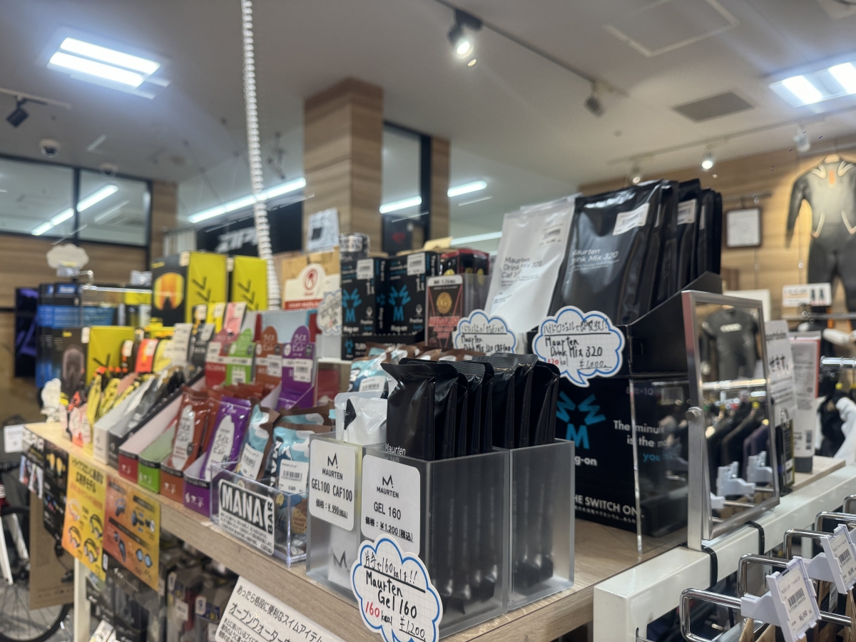 今回のような補給食をはじめ、様々なトライアスロン用品を取り扱っています。