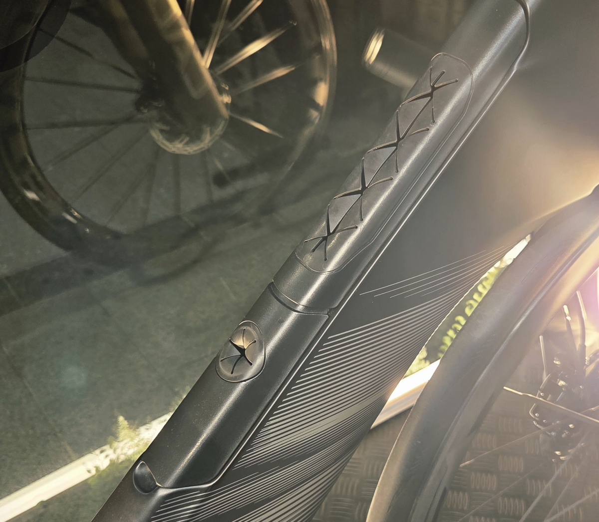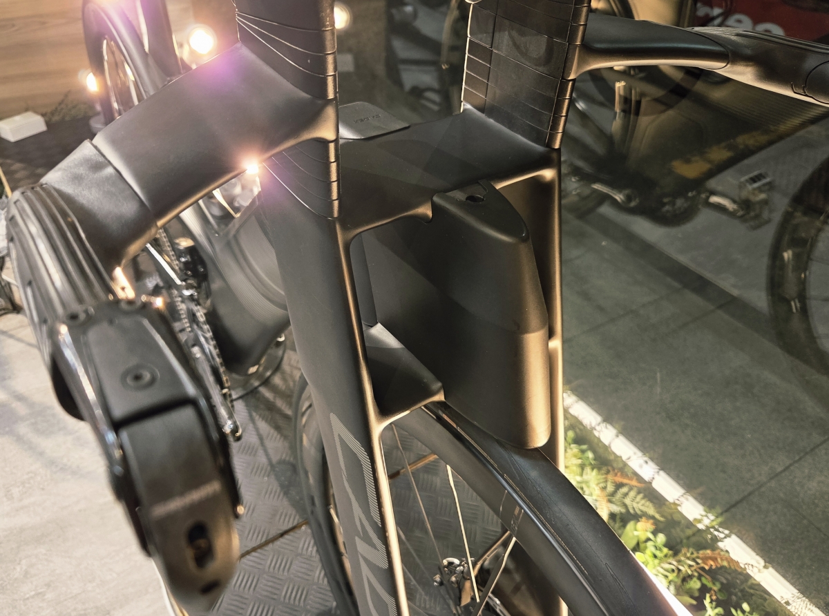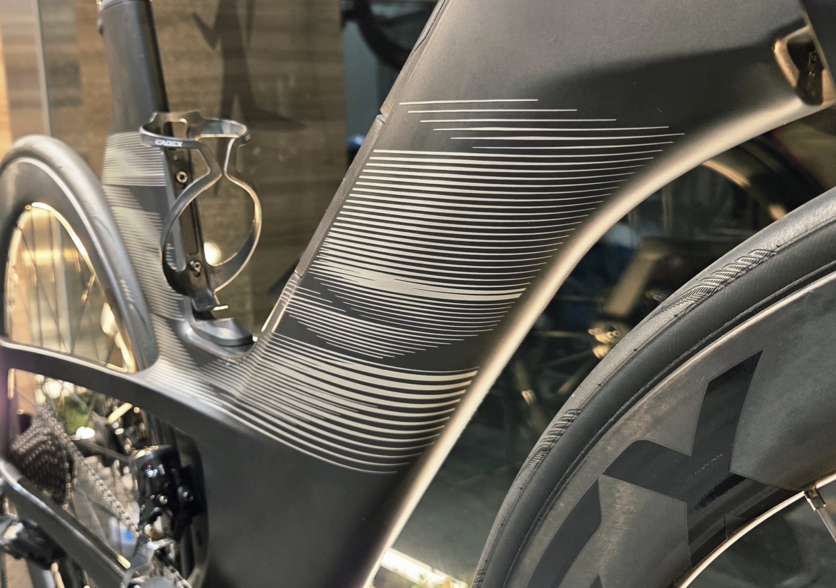 特徴的なダウンチューブは、ライダー乗車時に最適な空力を実現できるよう設計。