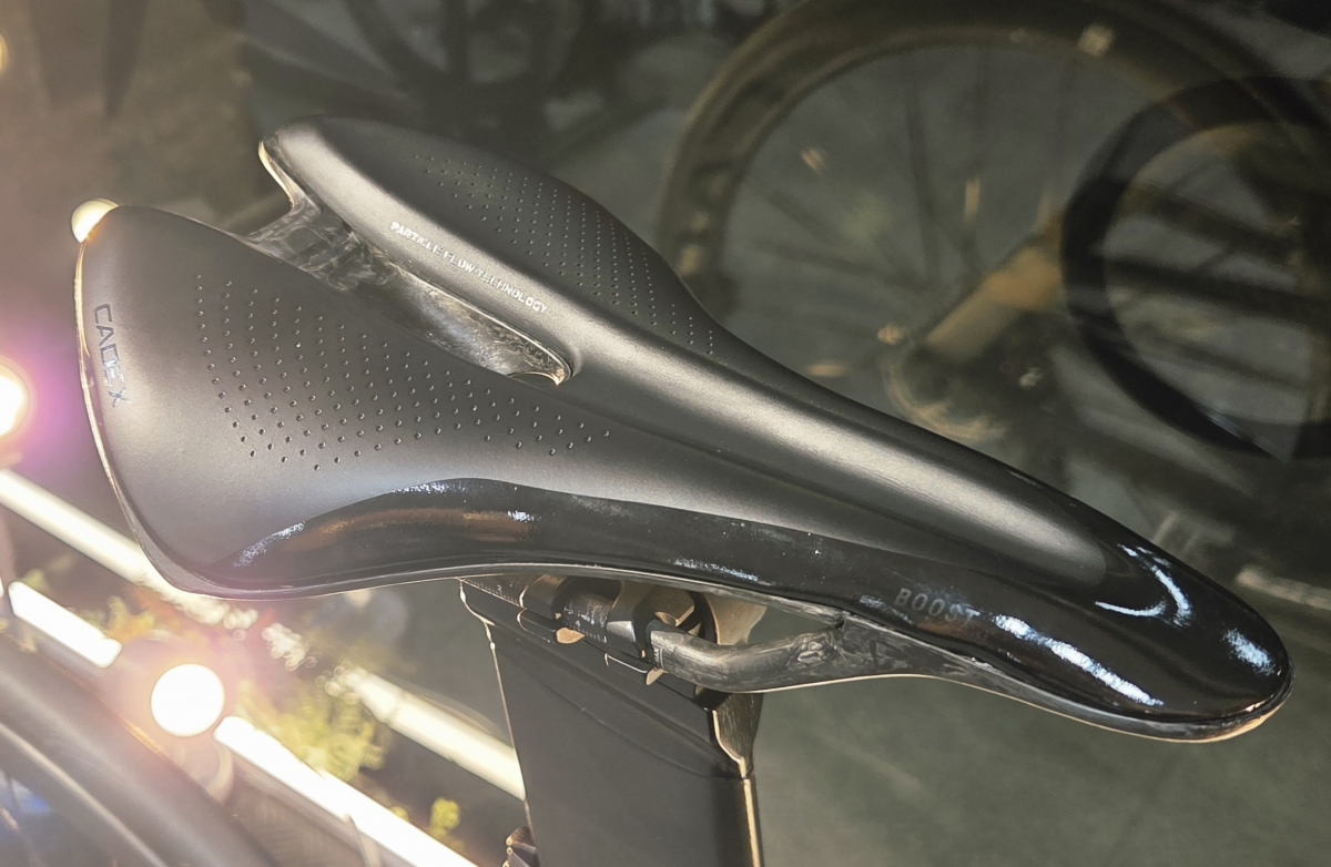 パーティクルフローテクノロジーによって、座面がライダーの骨盤を包み込みます。
