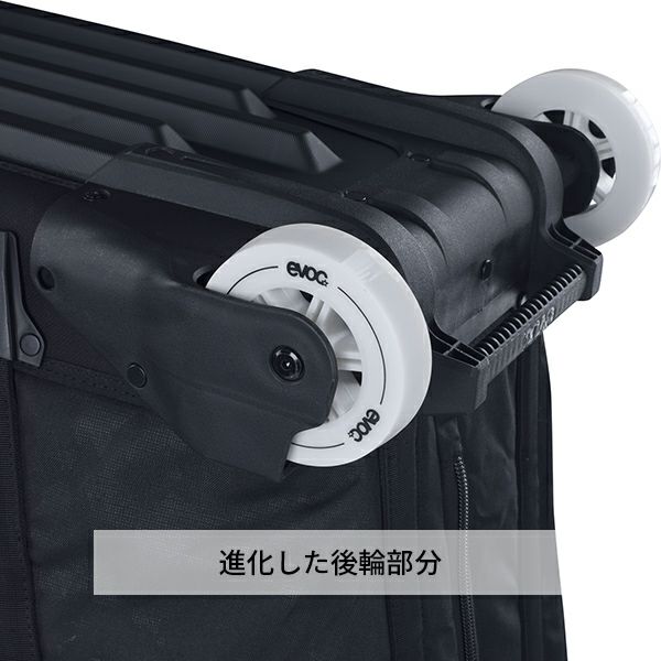 EVOCが新たに開発したQWD(QUIET WHEEL DRIVE = 静音性が向上したウィール)を搭載。前作よりも1.7kgほど軽量化されアップデートし、飛行機輪行のファイナルアンサーとなるだろう。