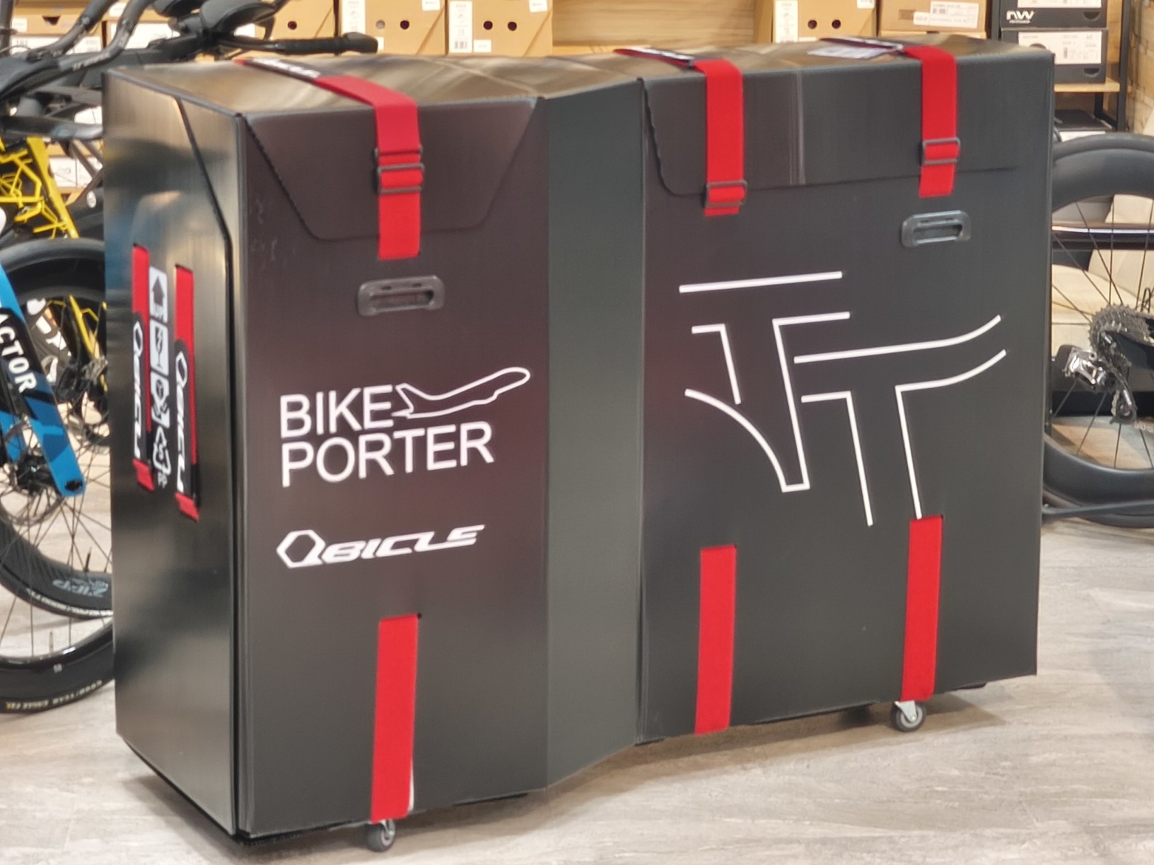 飛行機輪行に欠かせないQbicle バイクポーター。
