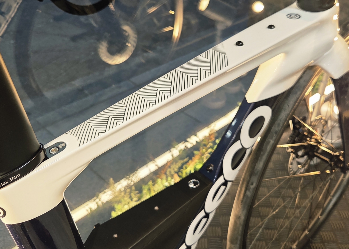 トップチューブには補給食を入れるバッグをボルトオン可能。