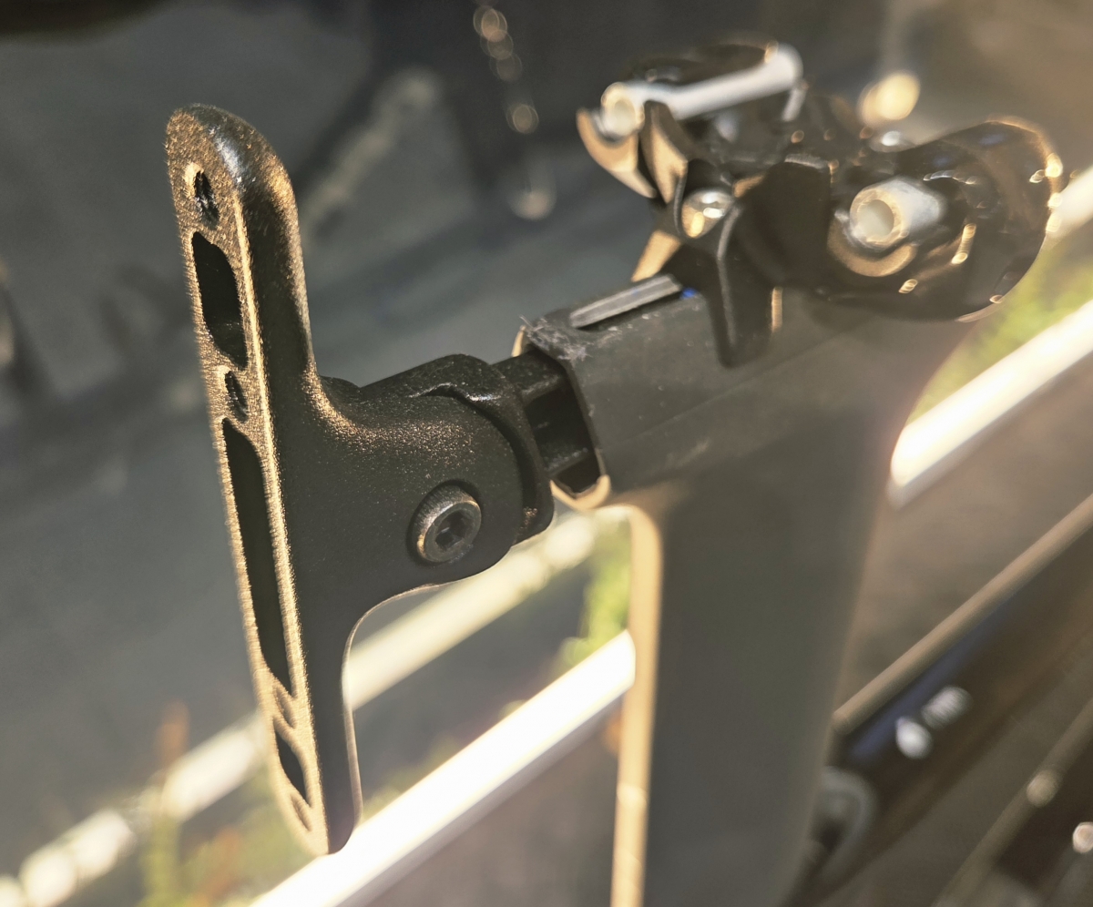 ケーブル類はトップカバーから内装。通常ブレーキホースが外出しになりますが、今回の試乗車では試験的に専用のカバーを加工して囲い、露出を最小限に抑えています。