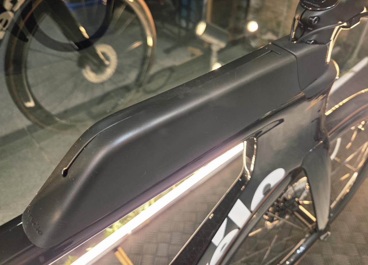 ケーブル類はトップカバーから内装。通常ブレーキホースが外出しになりますが、今回の試乗車では試験的に専用のカバーを加工して囲い、露出を最小限に抑えています。
