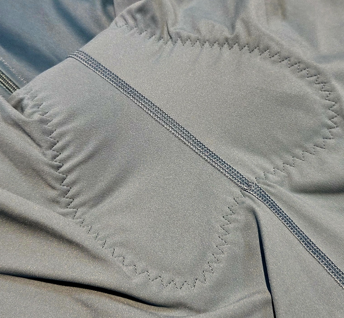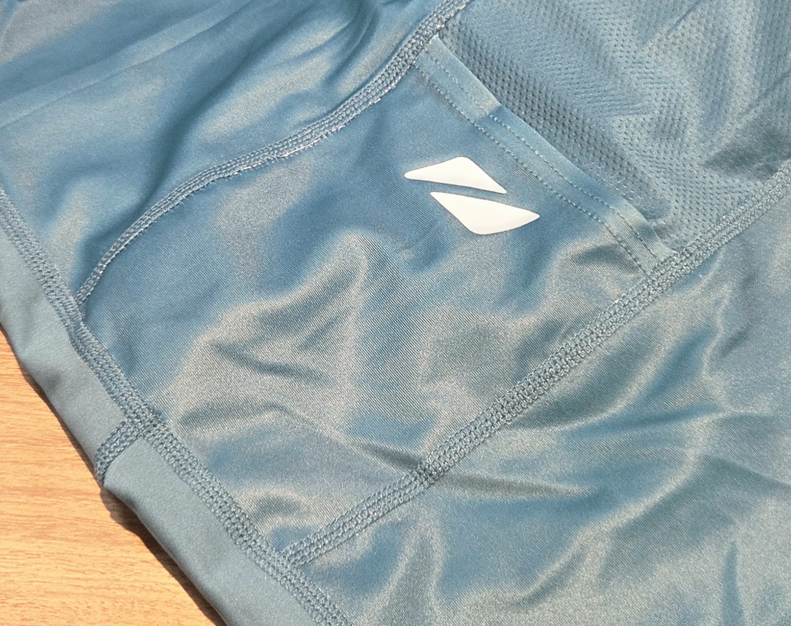 リサイクル素材を使用したシャモア(股部分のパッド)は複数の厚みを組み合わせ、3種目を通して行われるレース時にも快適な設計です。