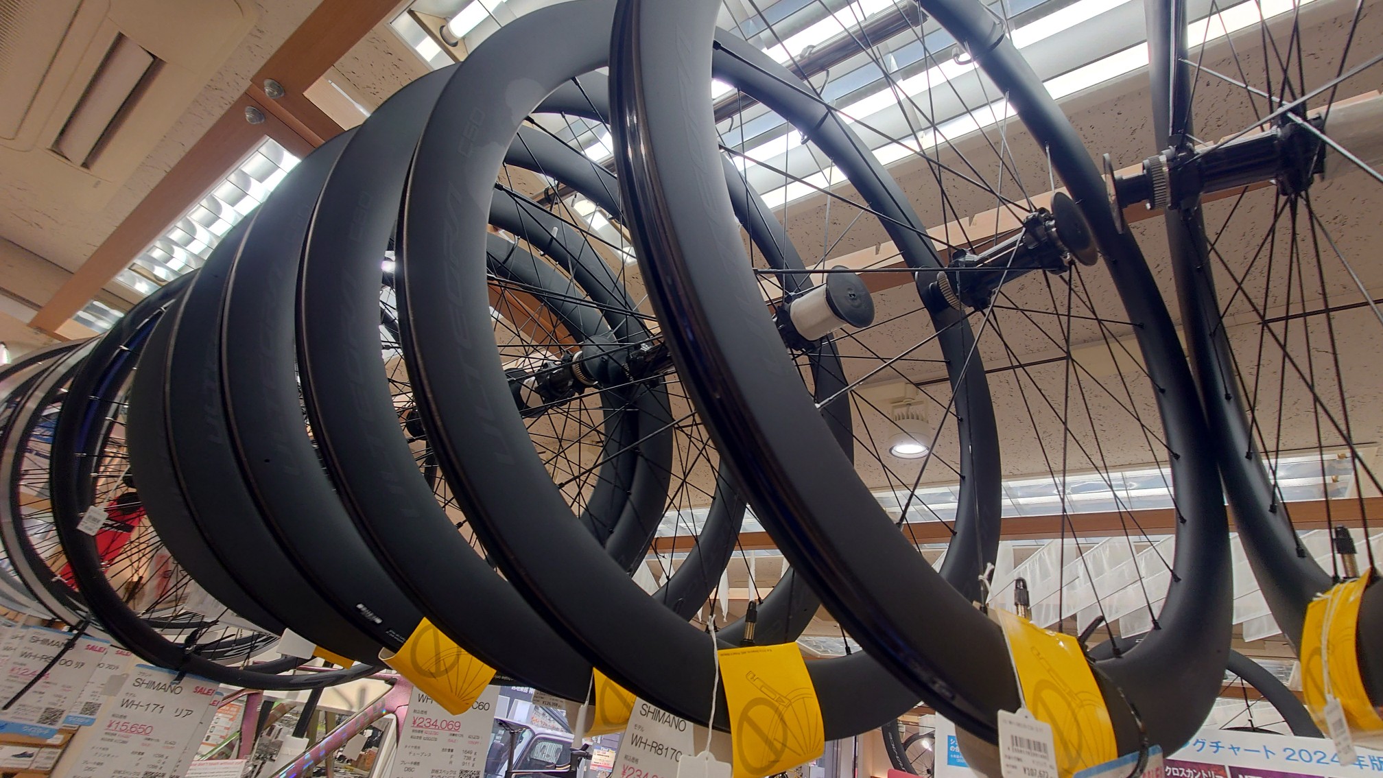 ディープホイール、カーボンホイールはワイズロードトップの在庫