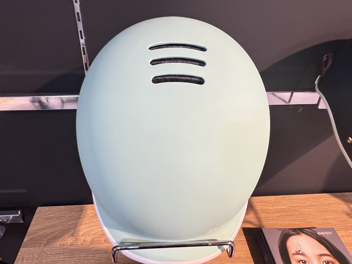 お顔が小さすぎてサイズ感がちょっと合っていないんですが、それでもヘルメットヘルメットしていなくて丸い形もあって違和感なくとてもオシャレに感じます。