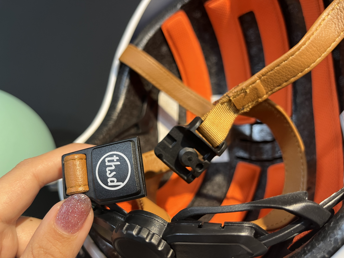 ですがこちらのヘルメットだとこの穴にU字ロックやチェーンロックを通してあげることで盗まれるリスクが減ります!!すごく便利!