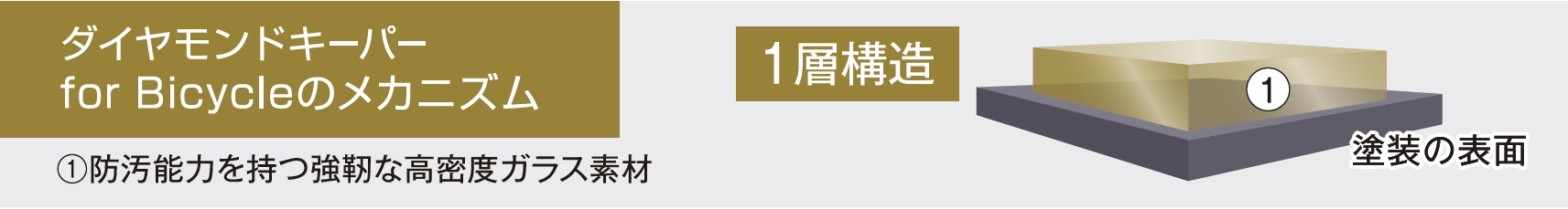 カーコーティングで高い評価をいただいているダイヤモンドキーパーをベースにし、自転車への施工に適したコーティングとして開発されました。防汚能力を持つ強靭な高密度ガラス素材でコーティングすることで、ノーメンテナンスで 3 年間大切な自転車の塗装を守ることができます。