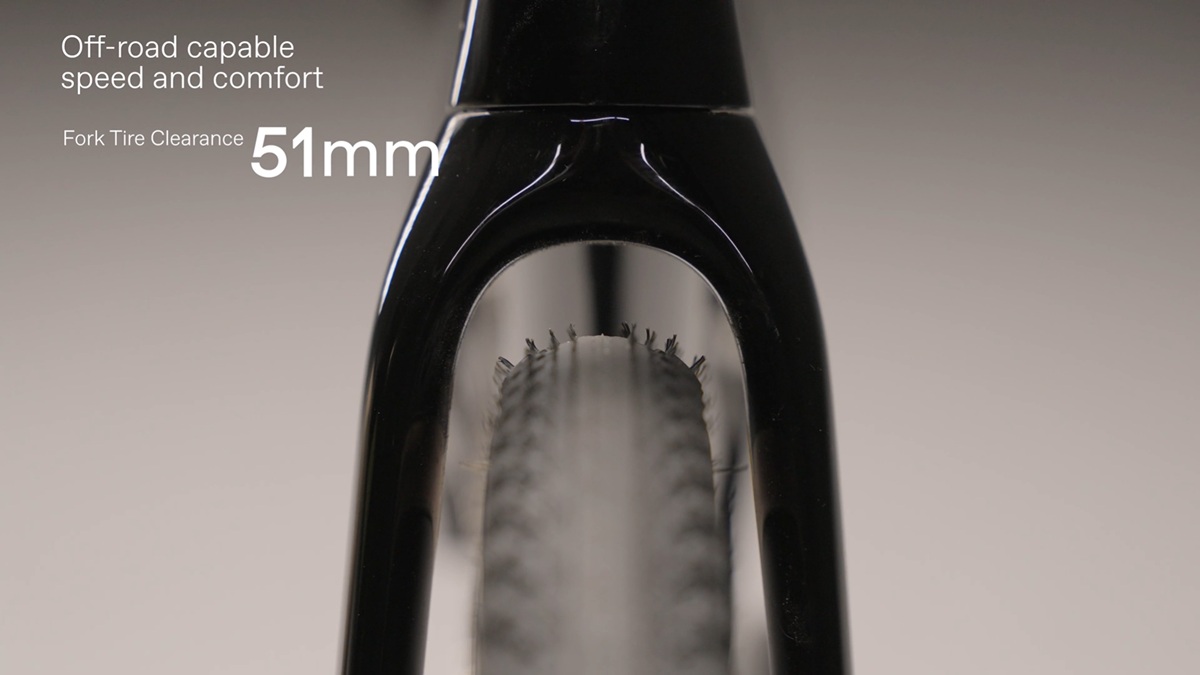 年を追うごとに太くなるグラベルレースのタイヤ。ラクラン・モートン選手が2024年のUNBOUND GRAVEL 200マイルで優勝した際のSUPERSIX EVO SEのタイヤは、公称最大タイヤ幅40mmにもかかわらず、リアがVittoria Mezcal700×44C、フロントはVittoria Terreno Dryのなんと29×2.1インチ(54-622)でした。※