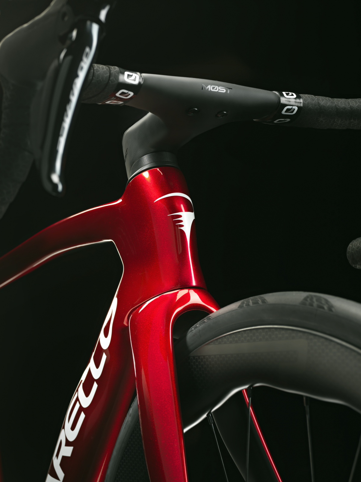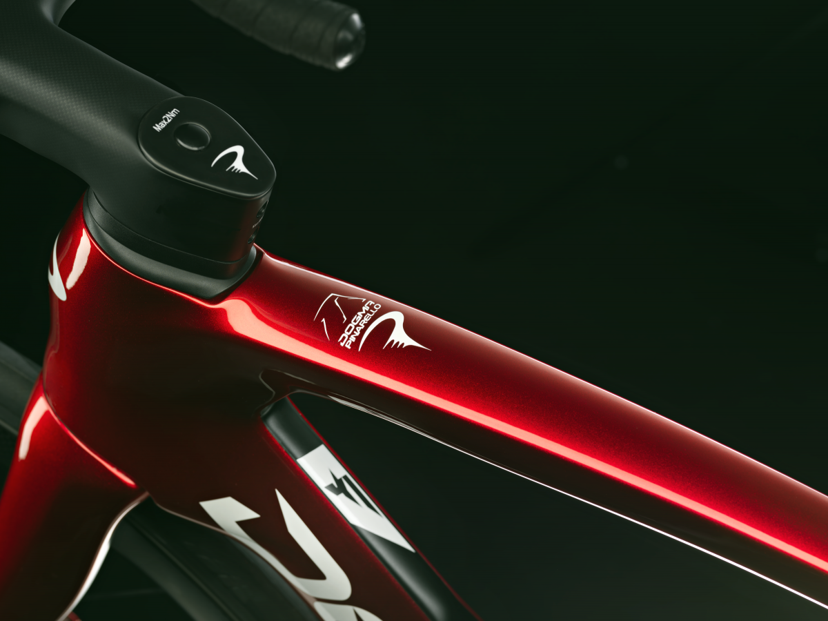 ダウンチューブ上部とリアトライアングル、フォークの内側部分のみカーボン地をさりげなく見せる『EDGE』という新たに採用されたペイントスキームで、素材の持つ質感を生かした洗練された仕上がりになっています。