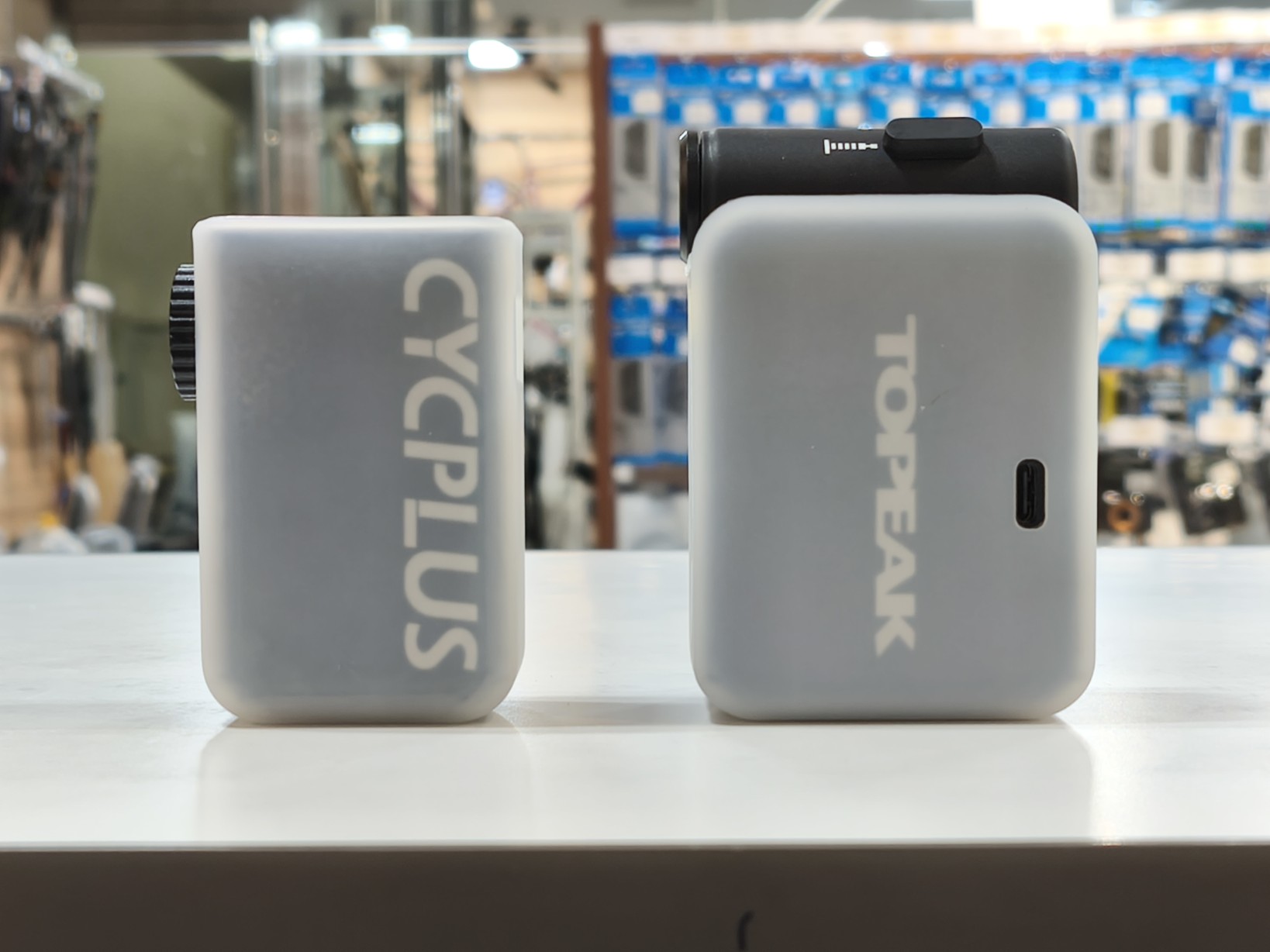 そして、新橋店では今までCYCPLUSや日邦電機の携帯電動ポンプを店頭在庫してきましたが、ついに大手メーカーのTOPEAKも参入!