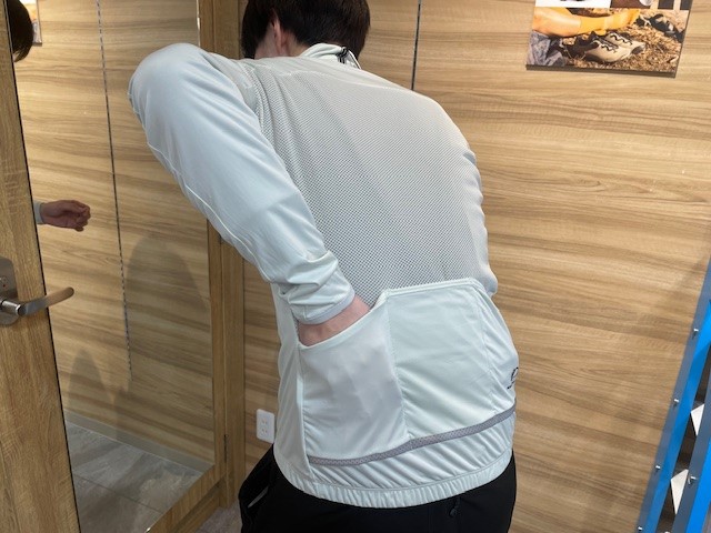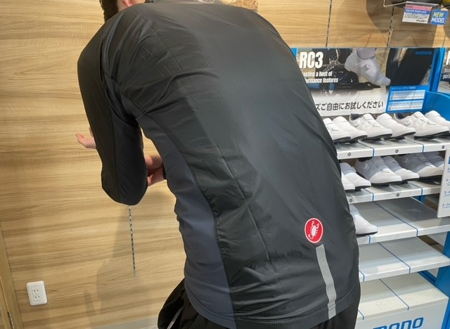 春に薄手の長袖ジャージや半袖ジャージに合わせる場合は同サイズのウインドブレーカーで良い事が多いですが、生地に厚みのある冬のウェアの上に羽織る場合は、いつもより1サイズ大きめの方が動きやすくちょうどいいこともあります。