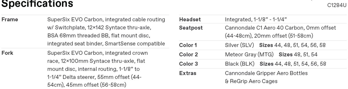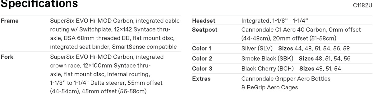 機械式12速変速のシマノ105を搭載したSUPERSIX EVO 4に関しては新色の発表はなく、既存3色が継続販売となります。