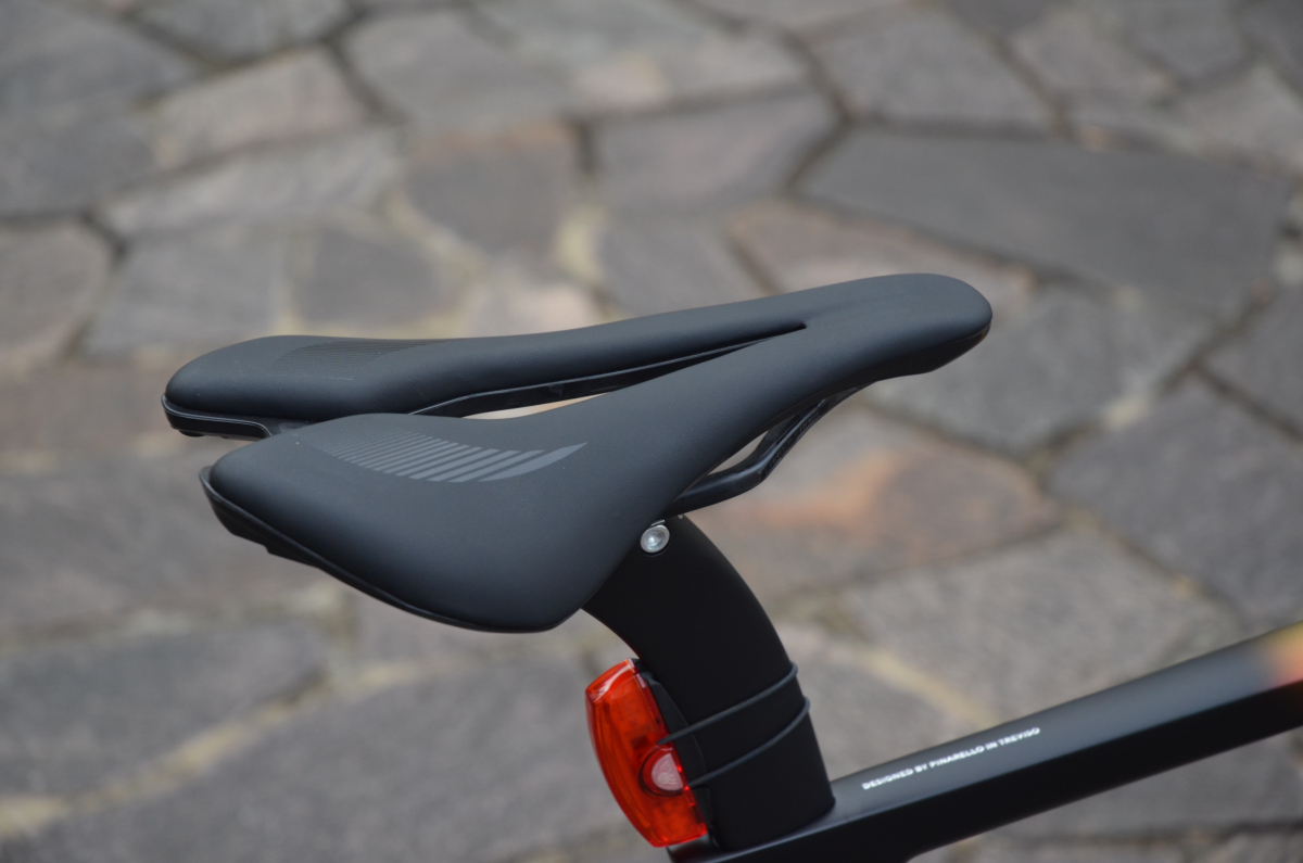 ピナレロのパーツブランドであるMOSTの最上位グレードのショートサドルでクッションがしっかりとしていながらも、160gと軽量に仕上げられています。