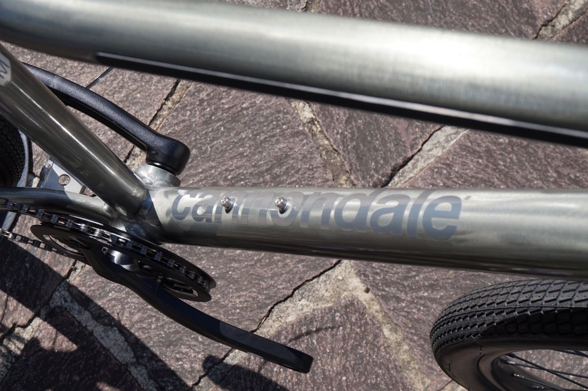 フレームに使われているアルミ材を磨き込んで、そのままクリアコートしたのが『Raw(生)』カラーです。磨き具合によって浮き出る模様が異なるため、1台1台個性があるのがRawカラーの特徴です。塗料ケチったわけじゃないですよ、むしろこちらの方が手間かかりますから。