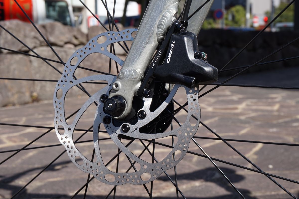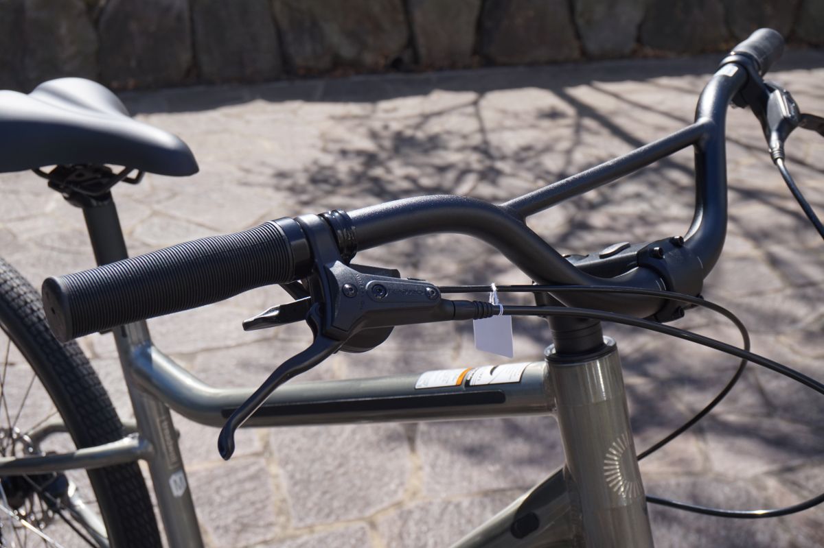 安心の油圧ディスクブレーキは、軽いレバーの引きでしっかり制動がかかります。というと効きすぎを心配される方もいらっしゃいますが、そんなにガッツンとは効かないのでご安心を。